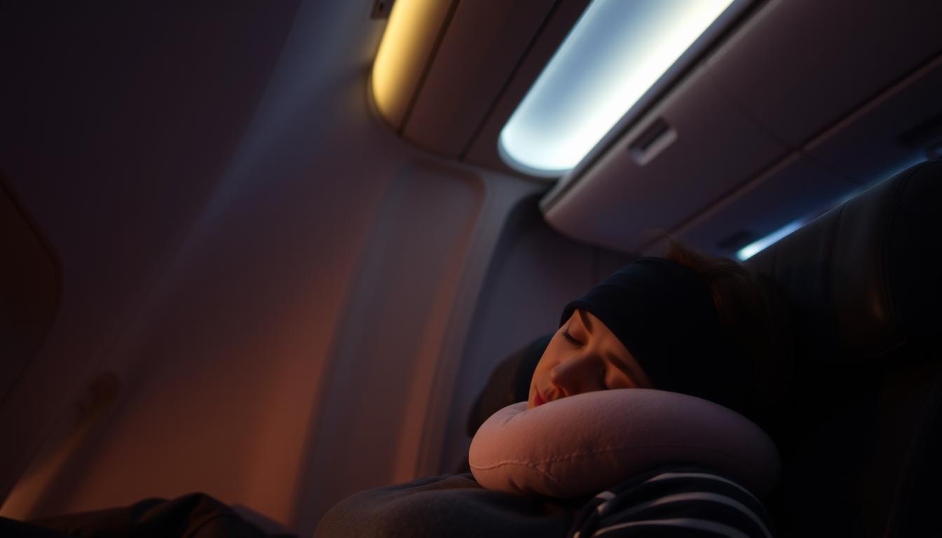 Drink 8 ounces of water every hour to combat dry air. For overnight flights, try melatonin (0.5–5 mg) with a lavender-scented compress. For daytime flights, take naps between meals and use pink noise apps to fall asleep faster.