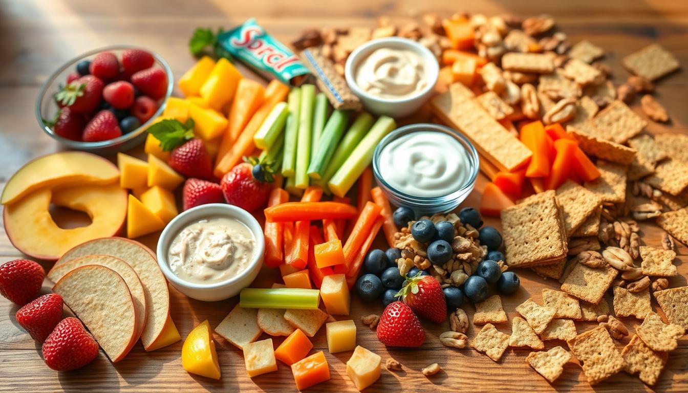 Try vegetable snack ideas like sheet-pan roasted zucchini, red peppers, or carrots. They are cool or warm, delivering crunch and vitamins. Spread with hummus or Greek yogurt dip for extra protein—just 1/4 cup salsa adds only 68mg sodium compared to movie popcorn’s 2,650mg.