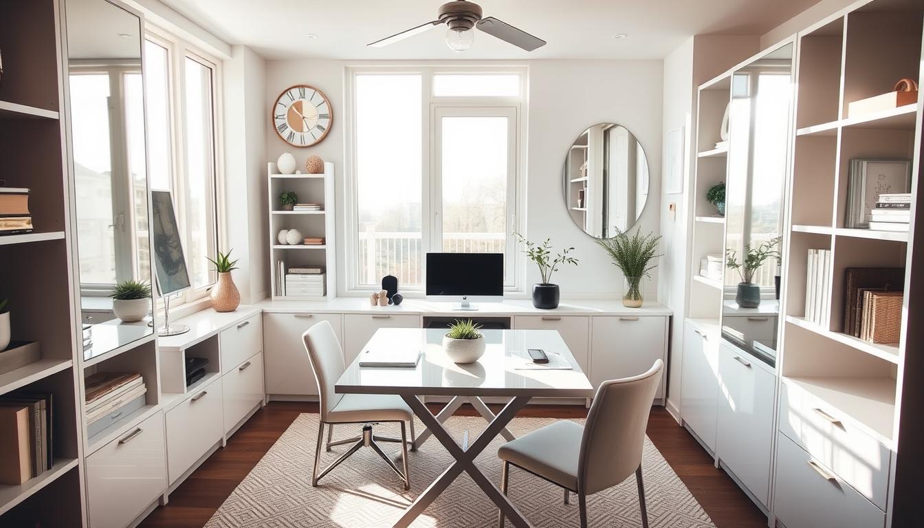 Remember, glossy surfaces for small spaces need intentional placement. Hang a metallic wall hook by the door to reflect entryway light, or set a mirrored side table in a corner. These choices multiply the impact of your existing decor. Every shiny detail builds on the room’s open, airy feel.
