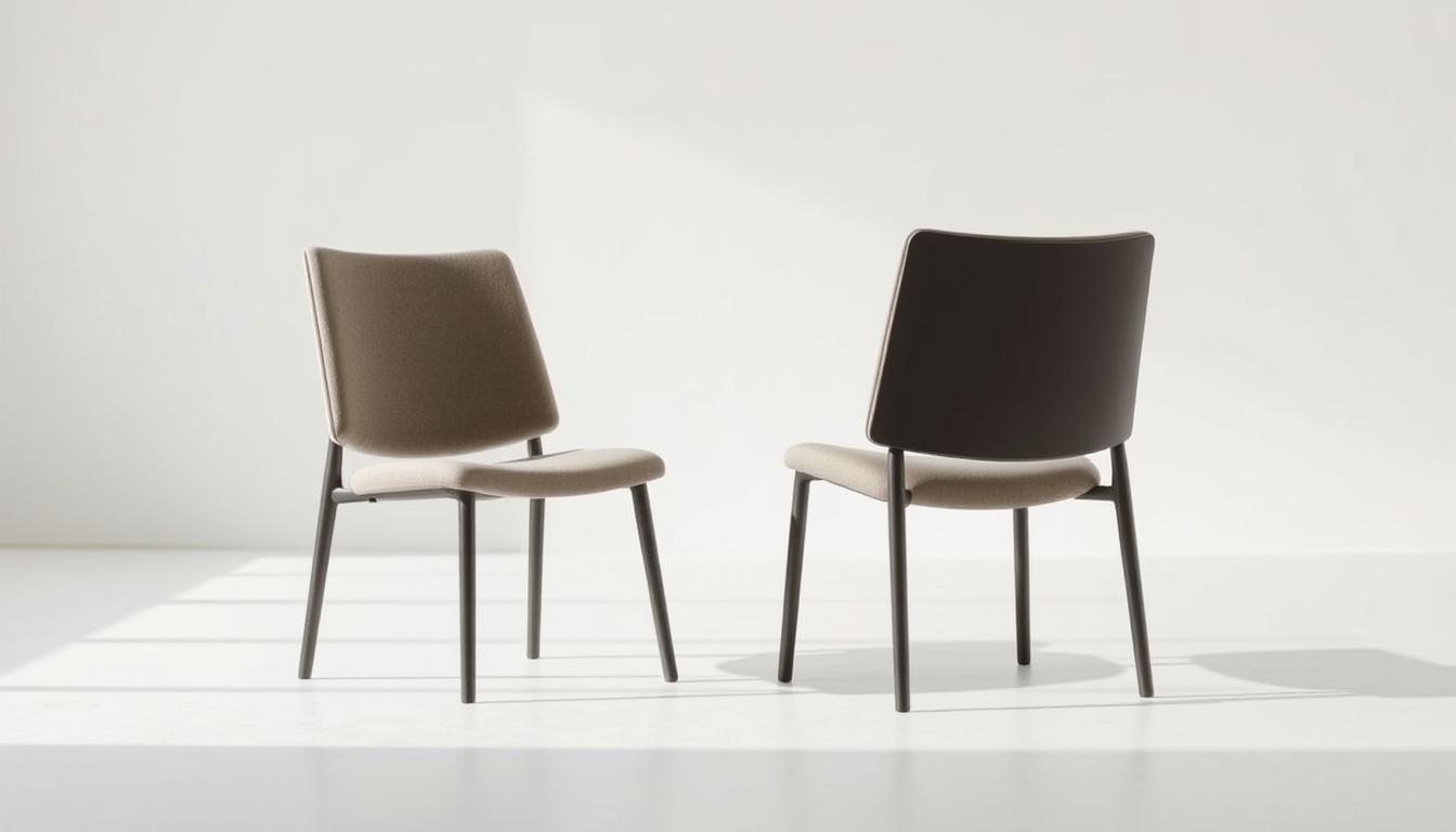 A two chair setup in minimalist style uses clean lines and neutral tones for harmony. Removing clutter highlights craftsmanship, like a sleek leather armchair with a sleek bench. This approach cuts cleaning time by 30% and boosts productivity by 80%, studies show.